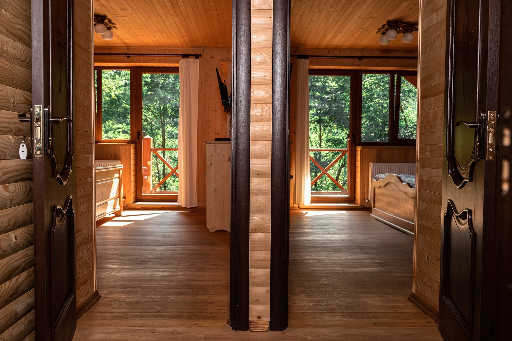 На другому поверсі — 2 двомісні номери (у кожному є двоспальне ліжко, вішалка та полиці для одягу, телевізор, балкон; санвузол — душова кабіна, туалет, умивальник).